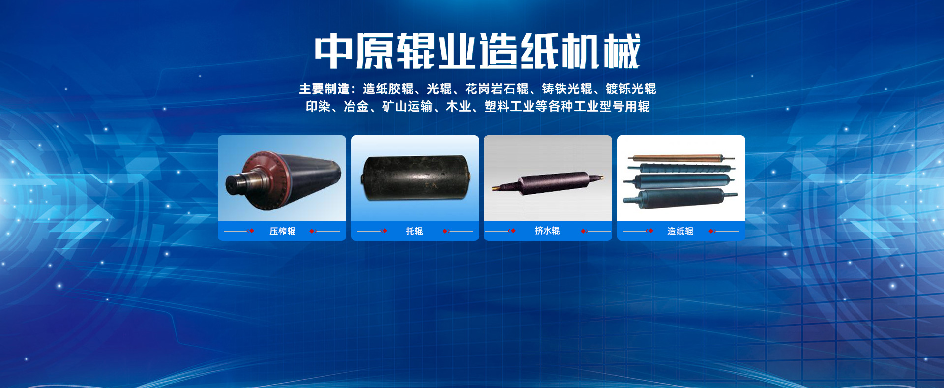 - 企业简介:沁阳市中原辊业造纸机械有限公司是一家生产制造高线压胶辊的民营企业,主要制造:造纸胶辊、光辊、花岗岩石辊、铸铁光辊、镀铄光辊、印染、冶金、矿山运输、木业、塑料工业等各种工业型号用辊。建厂二十年来,企业不断引进先进技术人才,注重企业现代化管理,以好的产品和周到的服务赢得了广大新老客户的一致信任和好评?! ∫滴穹段В涸谌鞯刈ぐ焓麓?,如:湖南衡阳、邵阳、礼灵、汩罗;福建泉州、沙县;广东潮州;重庆、安徽安庆、黑龙江哈尔滨、牡丹江;山东龙口;广西宾阳、玉林;甘肃兰州;陕西西安;河北宝鸡;贵州贵阳;新疆等产品销往全国各地?! 〔方樯埽浩笠抵饕灾圃旃夤?、胶辊、石辊等各种辊业为主,目前可以向国内外客户提供的弹性体覆面有橡胶、丁苯橡胶、顺丁橡胶、丁腈橡胶、氯丁橡胶、三元乙丙橡胶、丁基橡胶、氯磺化聚乙烯橡胶、硅橡胶、氟橡胶(不含浇注型聚氨酯橡胶)。硬度范围从SHA20-SHA100(P&J350-0)。线压力为350KN/M(约为350kg/cm)。根据客户的实际使用情况,还可以提供特殊的耐热、耐溶剂、耐化学腐蚀以及其他高物理化学性能的橡胶覆面。 企业承诺:我厂向广大新老用户承诺:一年之内如出现脱胶、起泡、轴活、辊断均由我厂包修包换,往返路费由我厂承担。